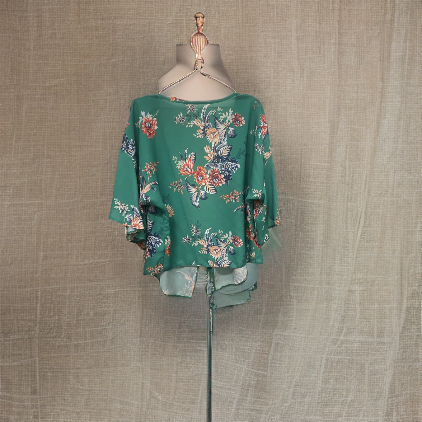 Rubynee Vintage y2k green womens floral wrap top size 12 -