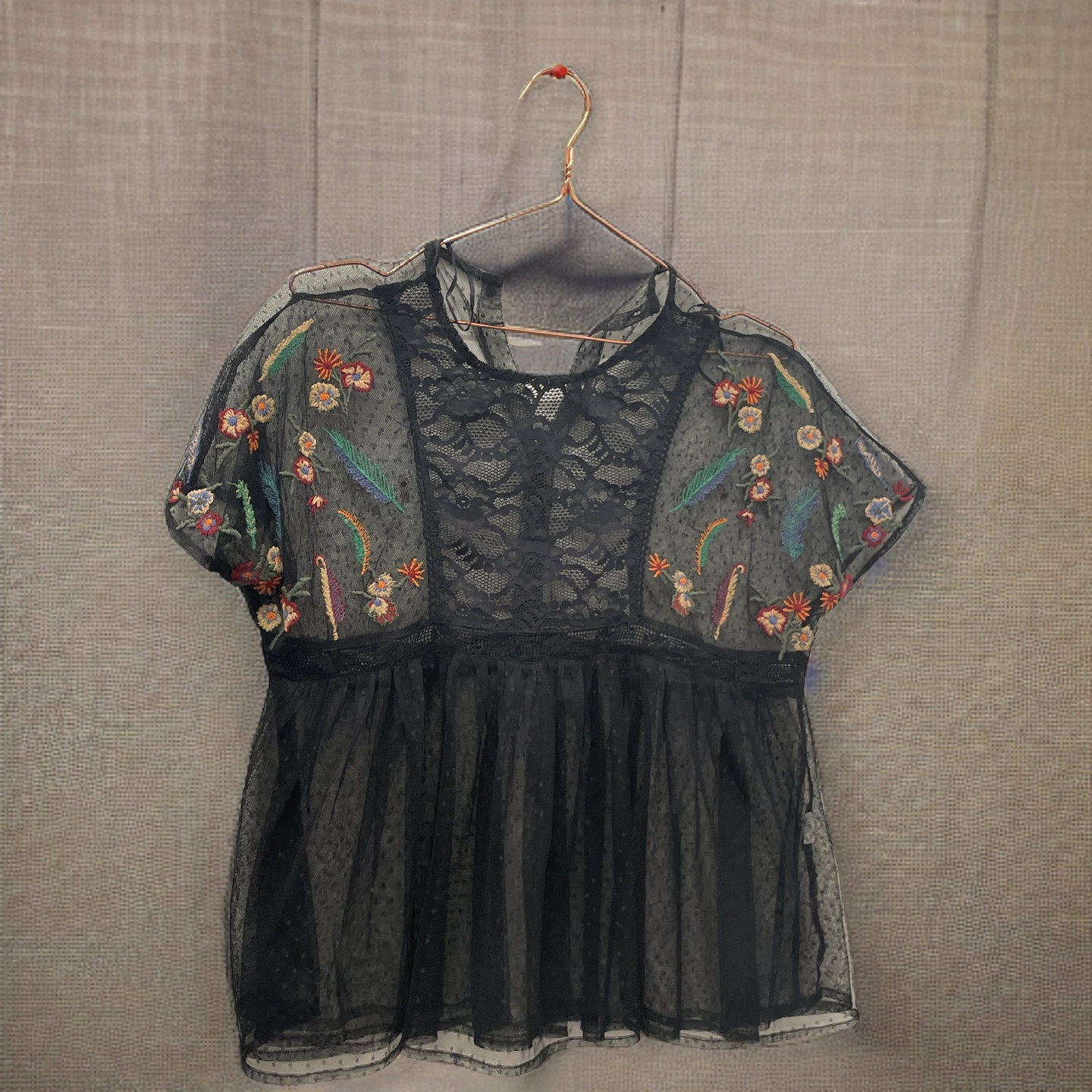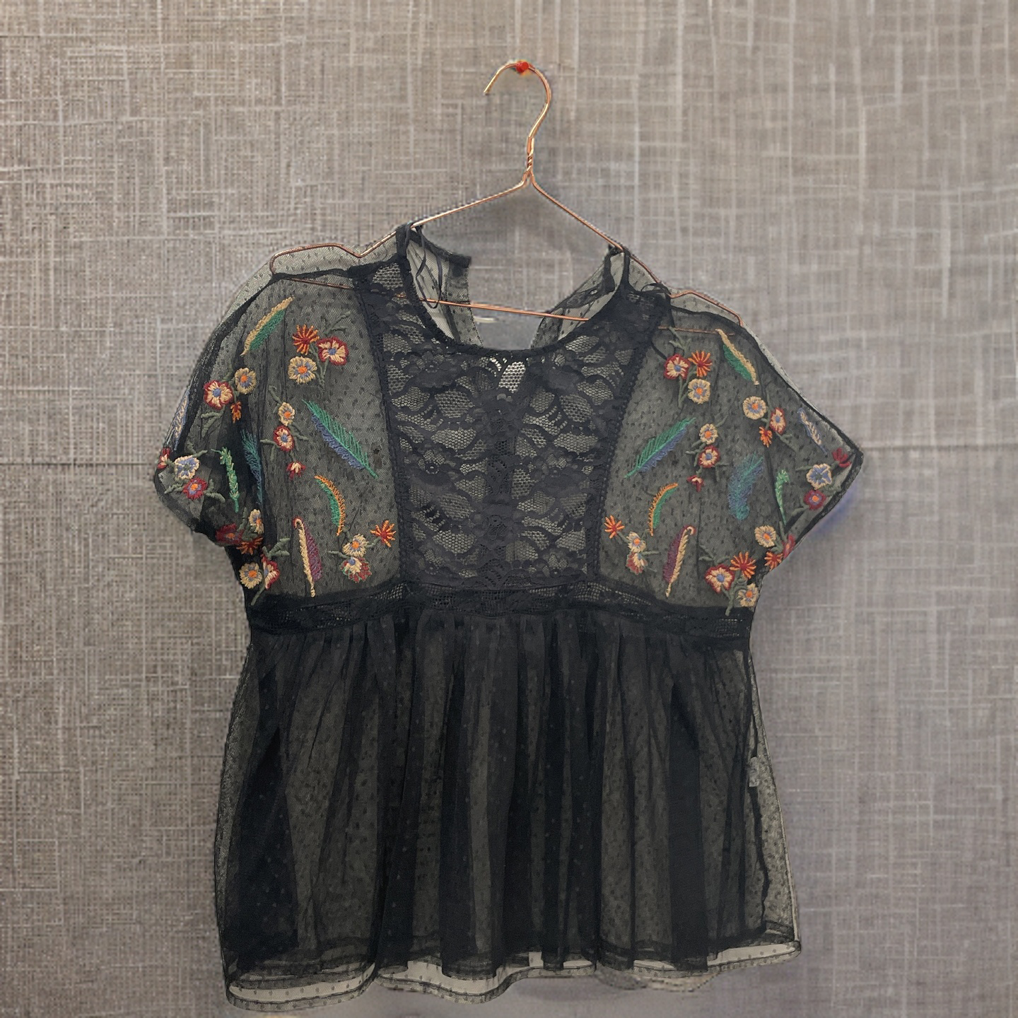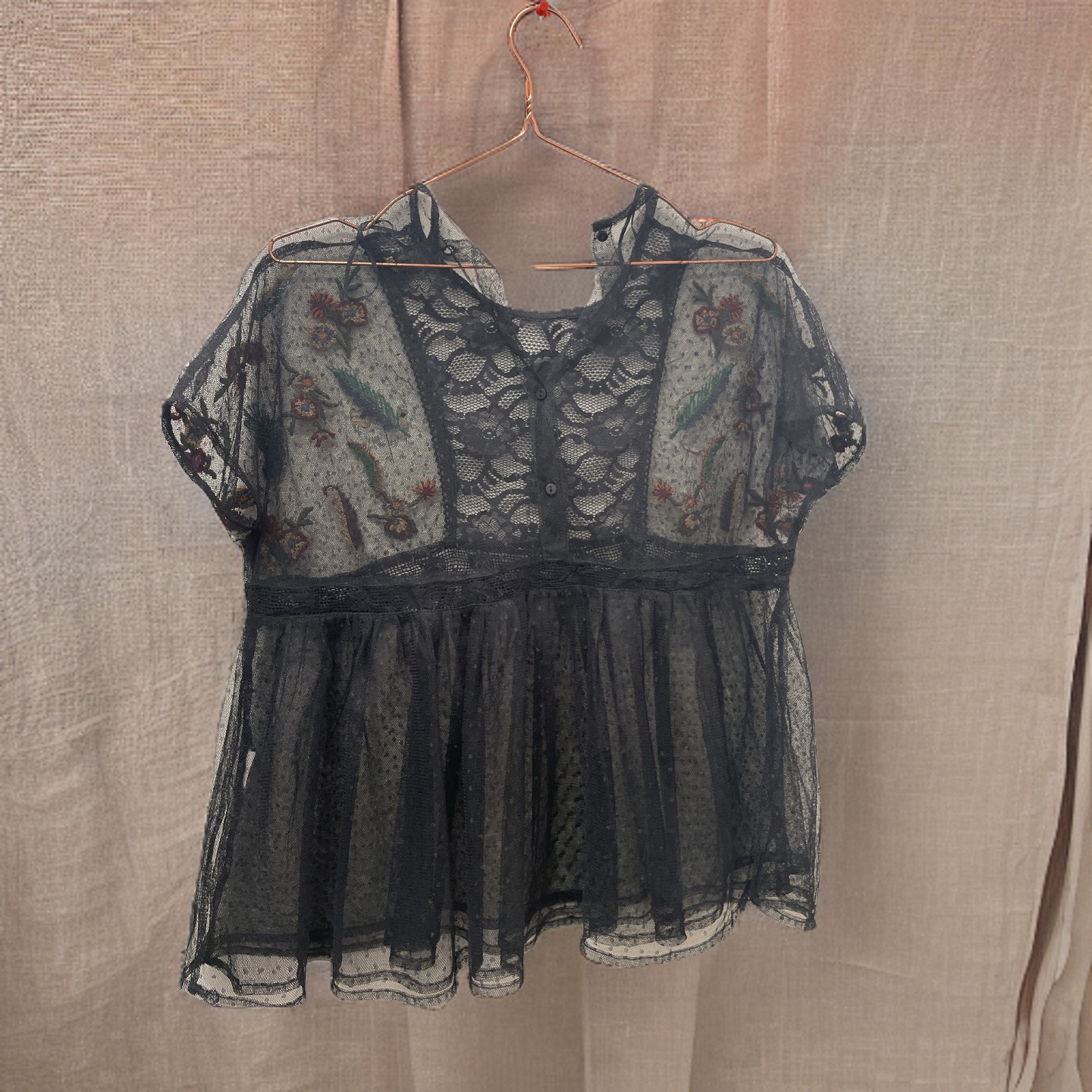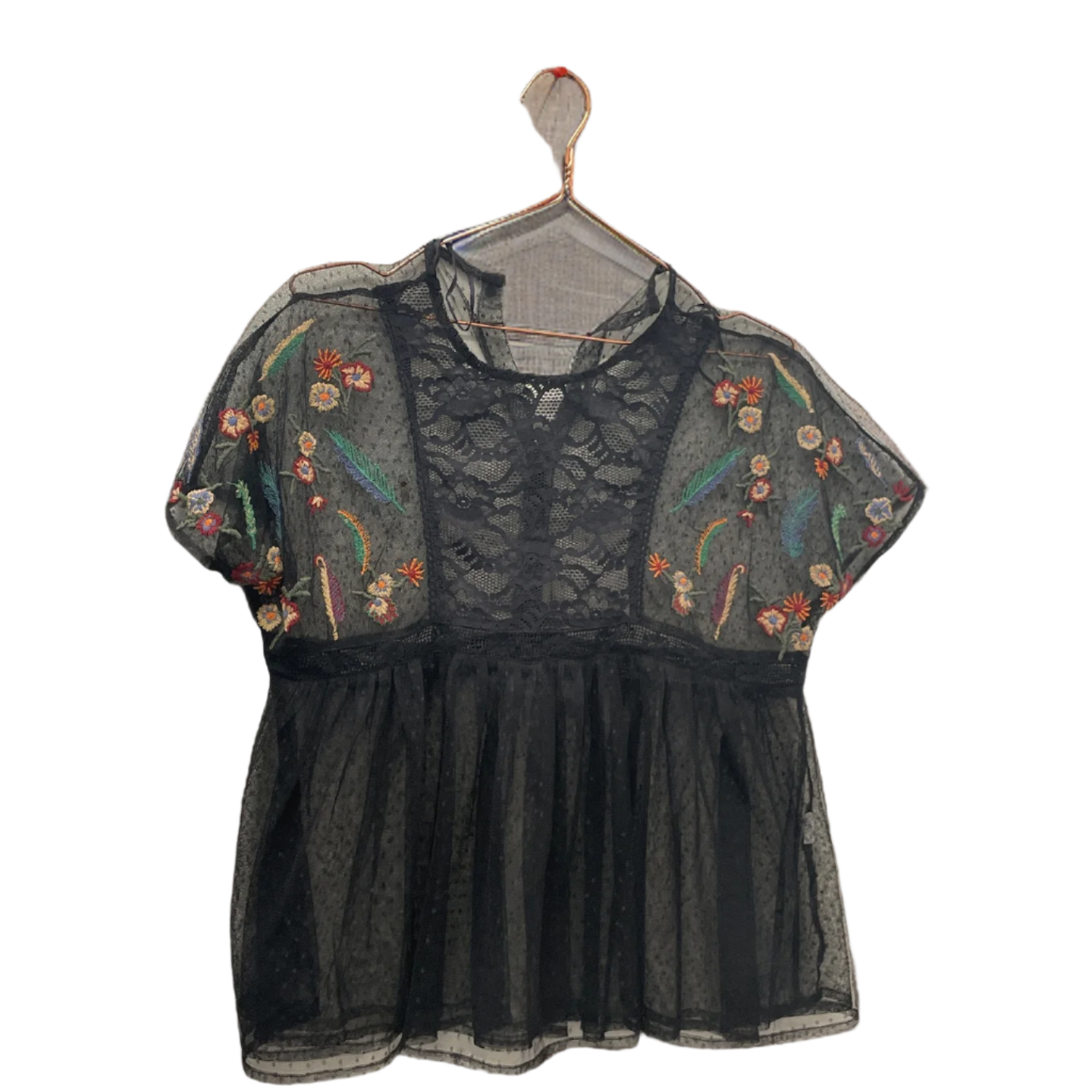 Rubynee Vintage y2k zara flowy lace short sleeve black top -