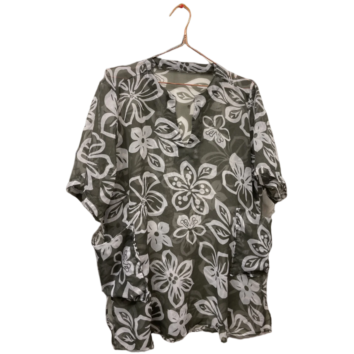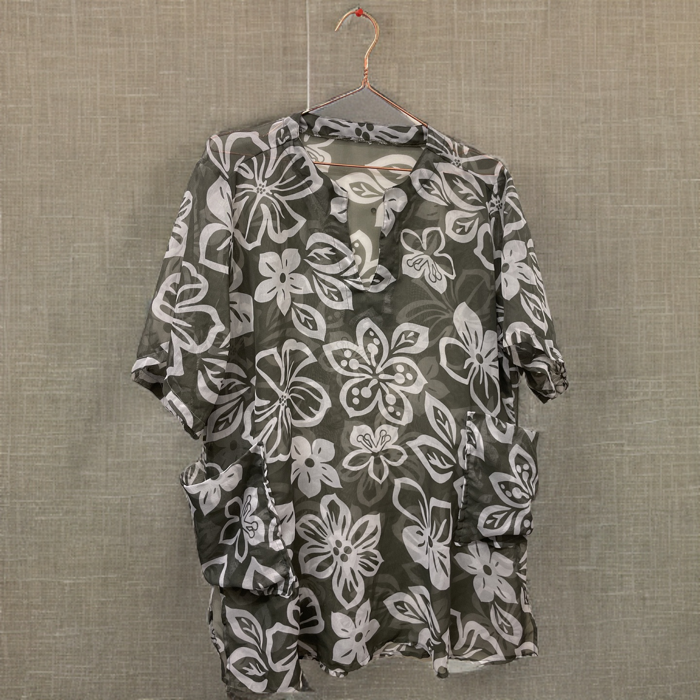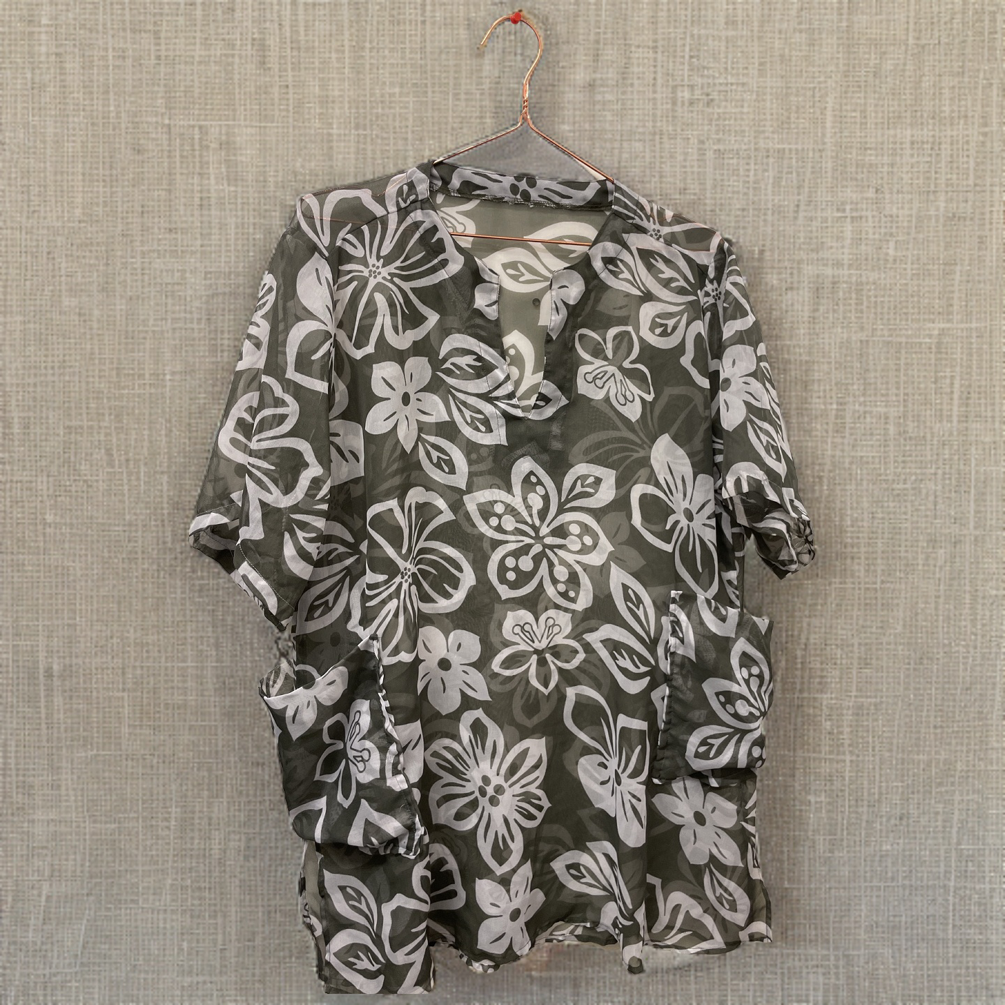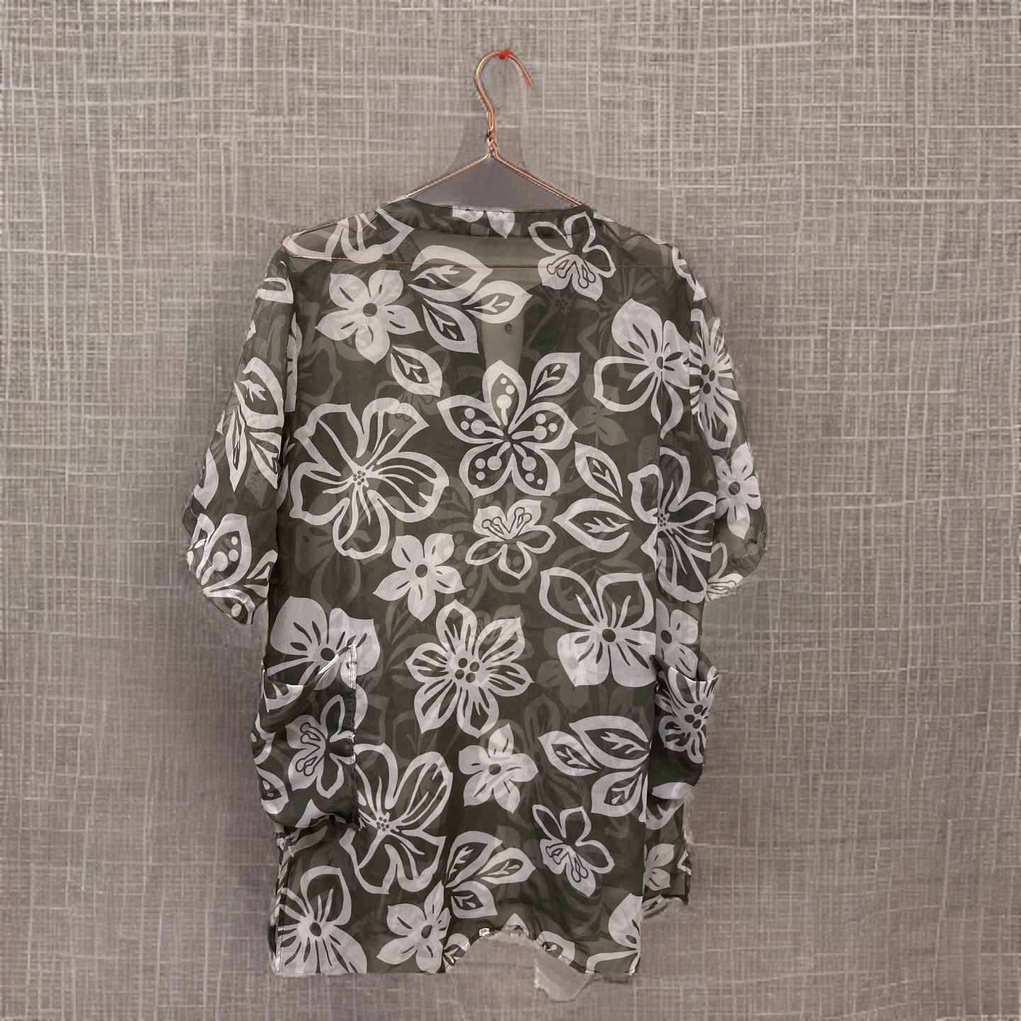 Rubynee Vintage y2k Hawaii floral print khaki green blouse -