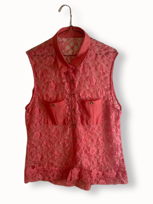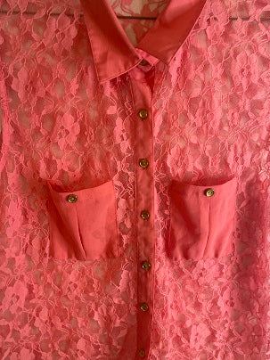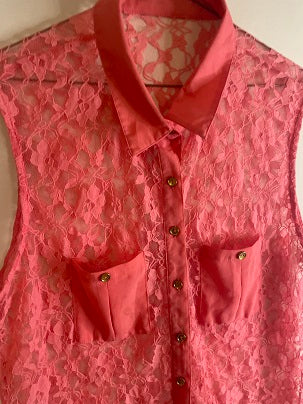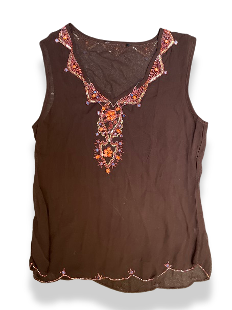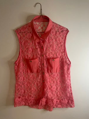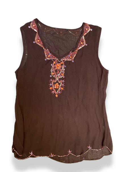 Rubynee Vintage y2k Womens coral sleeveless Embellished Blouse Top Size S -