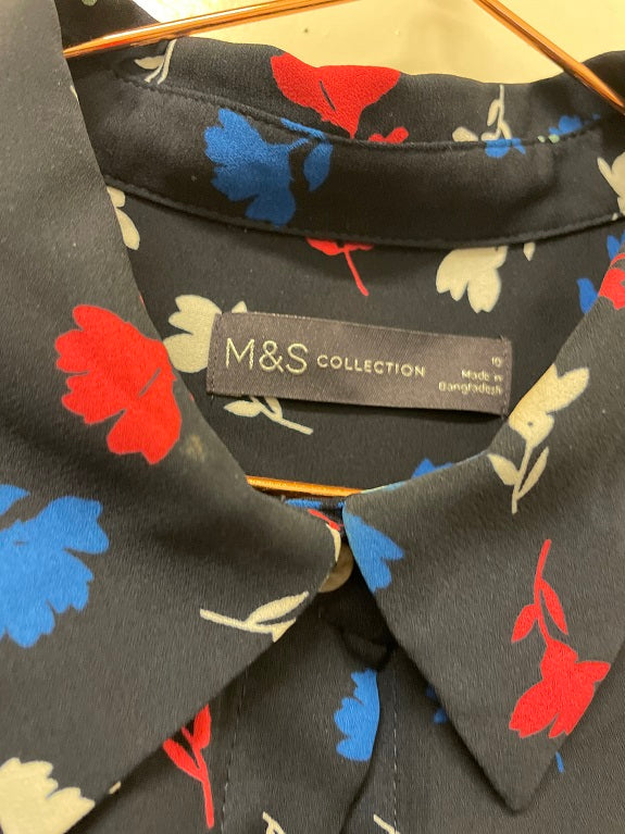 Rubynee Vintage y2k Marks and Spencer Womens Black Floral Basic shirt Size 10 -