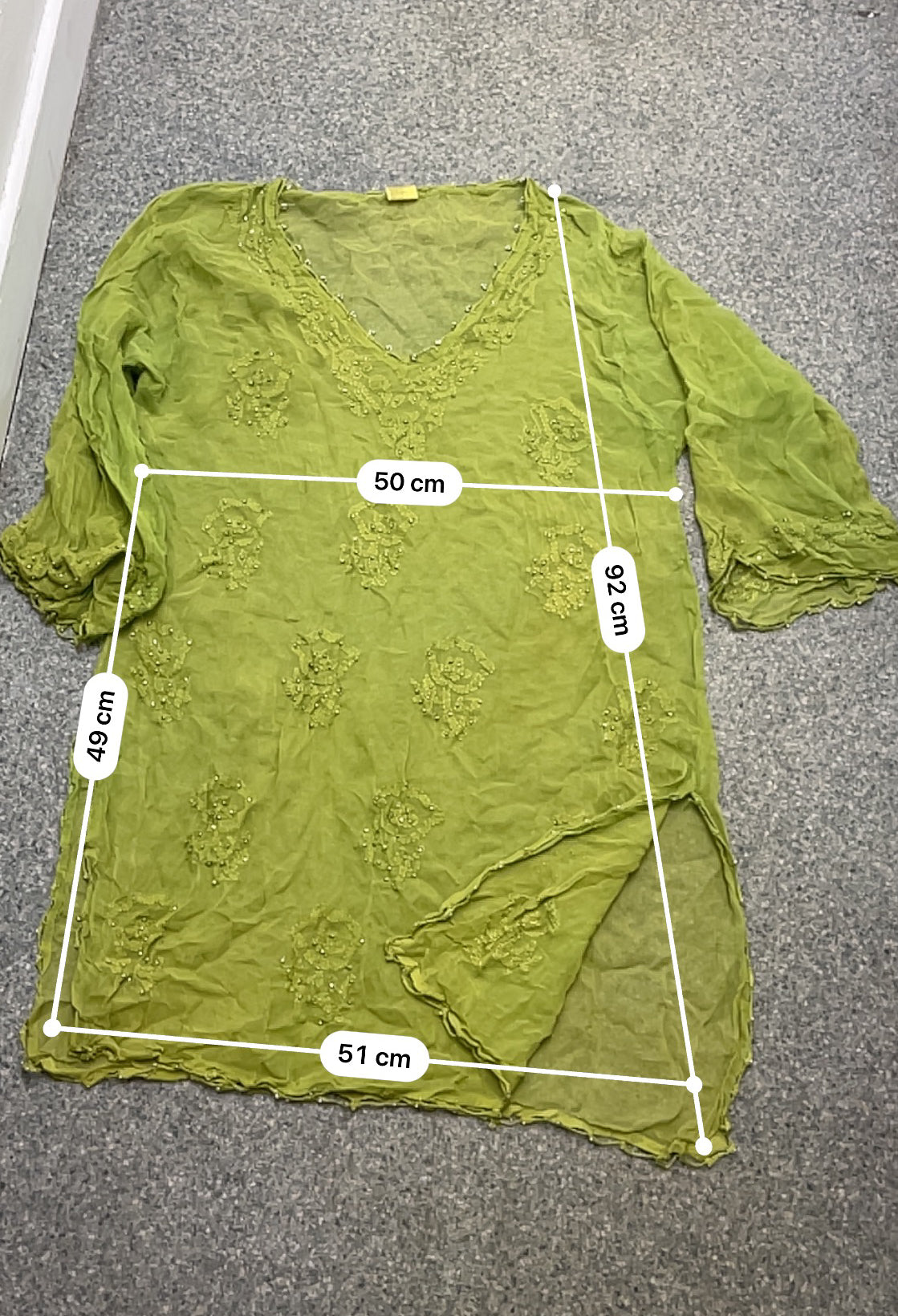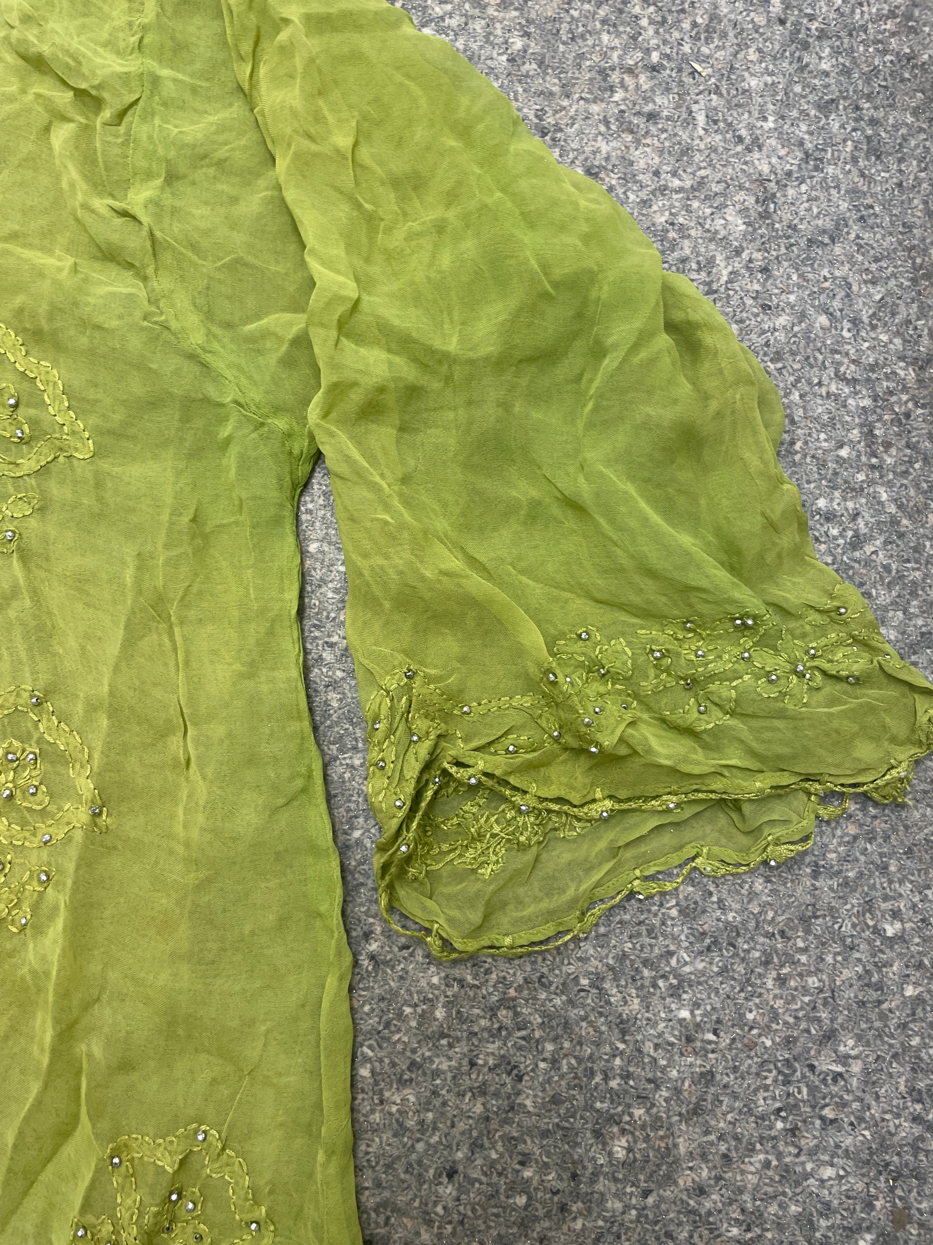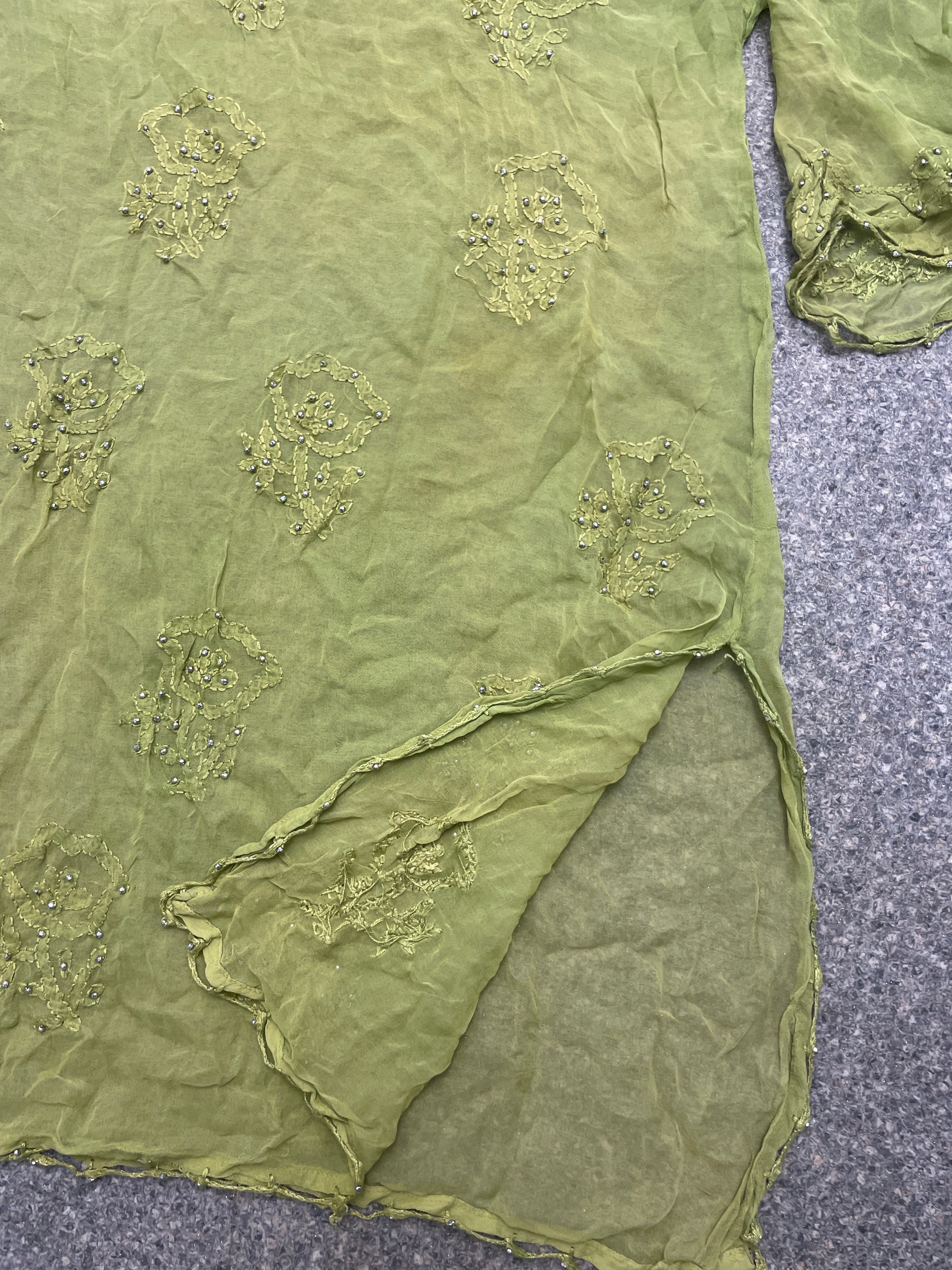 Rubynee Vintage y2k leaf printed kurta green blouse size XL -