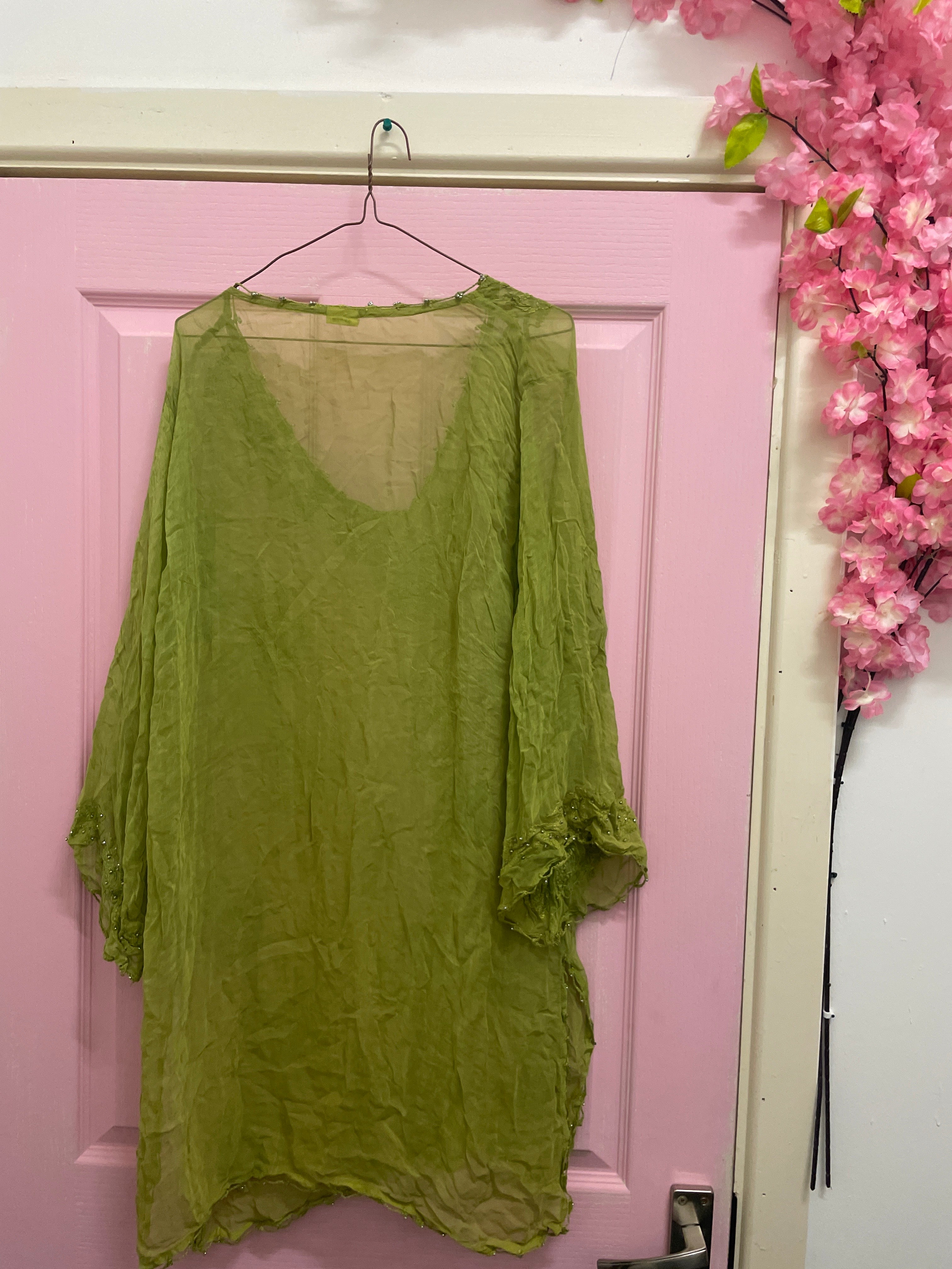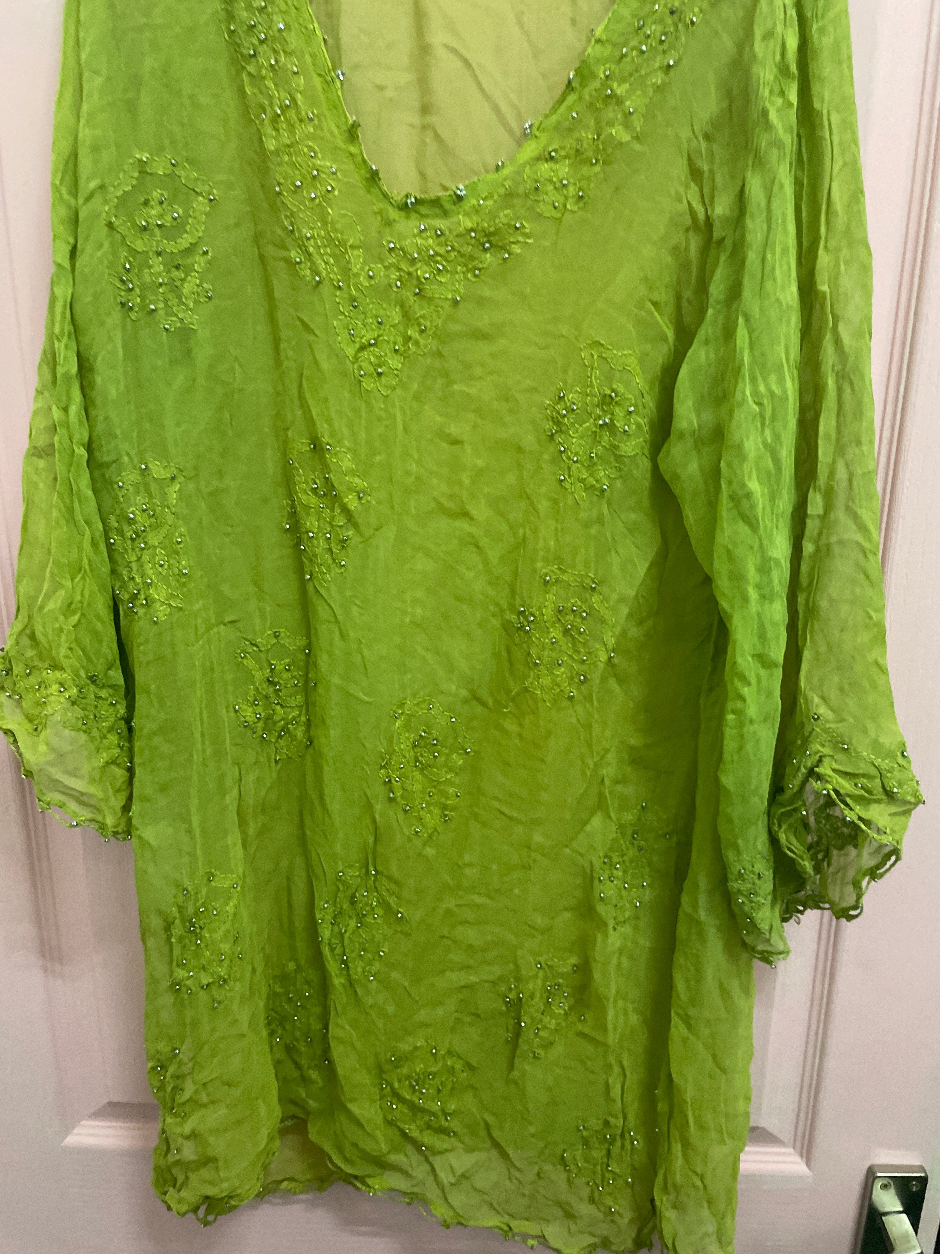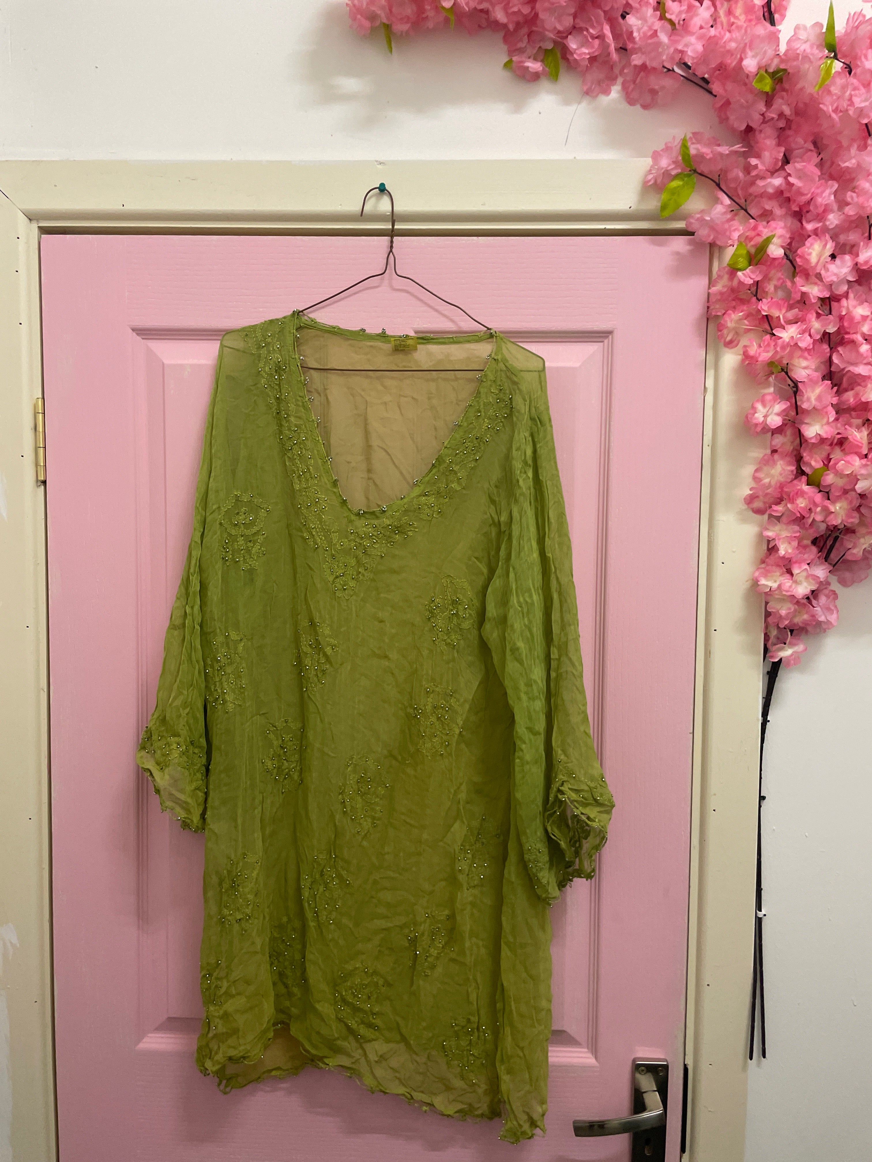 Rubynee Vintage y2k leaf printed kurta green blouse size XL -